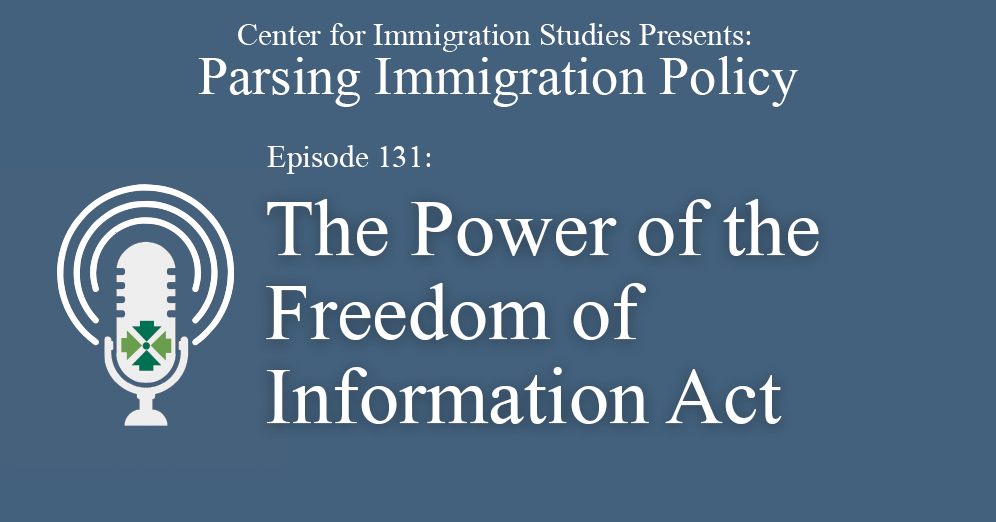 On this week’s episode of Parsing Immigration Policy, we are joined by Colin Farnsworth, the chief FOIA counsel at the Center for Immigration Studies, to discuss a powerful tool that promotes transparency and accountability from federal agencies – the Freedom of Information Act (FOIA). Farnsworth notes that FOIA essentially “shines a light on government actions.”