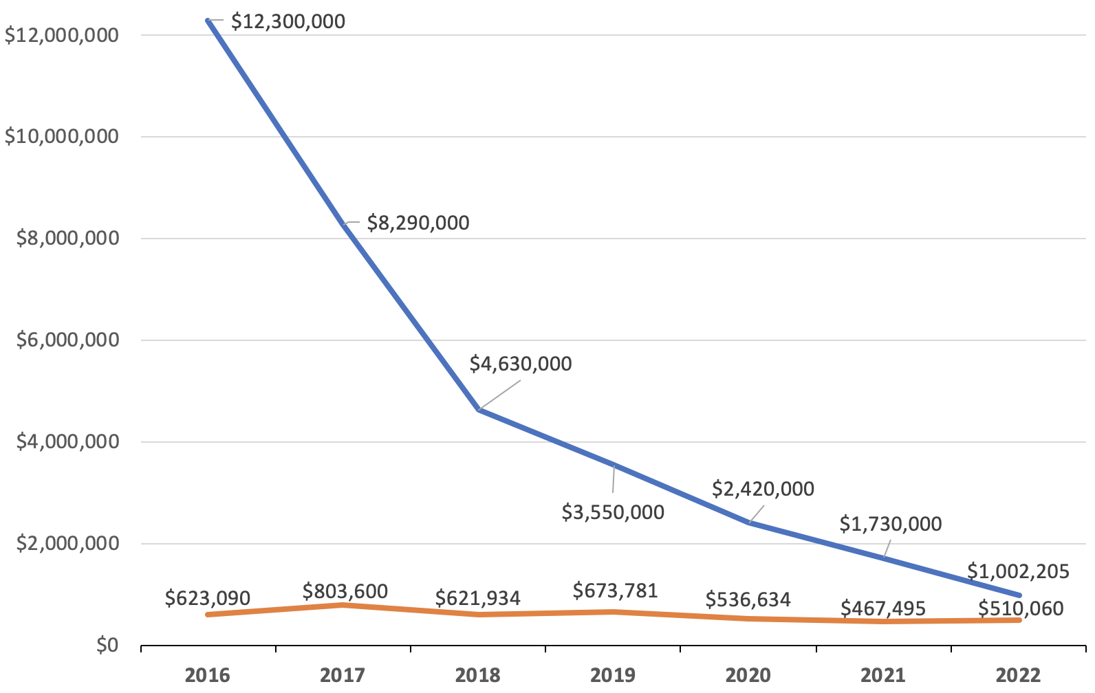 These two kept nearly steady salaries by dipping into the reserves that ACICS had built up over a century. These reserves dropped from $15.7 million in FY 2016 to $5.8 million in the 2022 report. The likelihood is that there still will be more than a million left when the outfit goes out of business unless the agency leadership does something unusual.