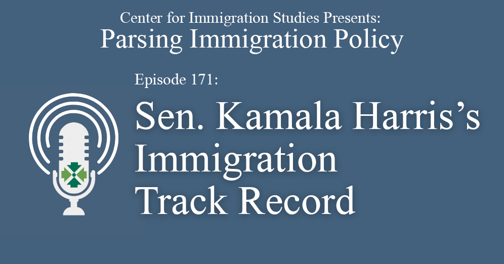 The Center for Immigration Studies has released a new episode of its Parsing Immigration Policy podcast based on a recent Center report, “Sen. Kamala Harris’s Attempted Sabotage of Immigration Law Enforcement”, which examines then-Sen. Kamala Harris’s immigration track record during her four years in Congress. Based on this comprehensive review of legislation that Harris either wrote or co-sponsored, the episode offers key insights into what immigration policies might look like under a potential Harris administration.