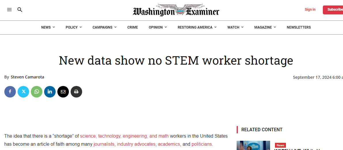 Op-ed: New Data Show No STEM Worker Shortage