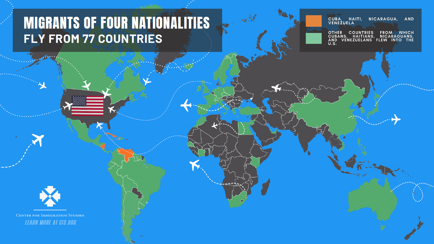The Center for Immigration Studies (CIS) has revealed through extended litigation another utterly egregious fraud that this administration will continue to perpetrate on the American people: Those Cubans, Haitians, Nicaraguans, and Venezuelans supposedly rescued for “urgent humanitarian reasons,” as the administration sold it to the American people, are flying to U.S. sanctuary from the safest, most prosperous, “happiest” nations and vacation wonderlands on planet Earth. Not from their problematic home countries, as the administration has mendaciously let the American people believe.