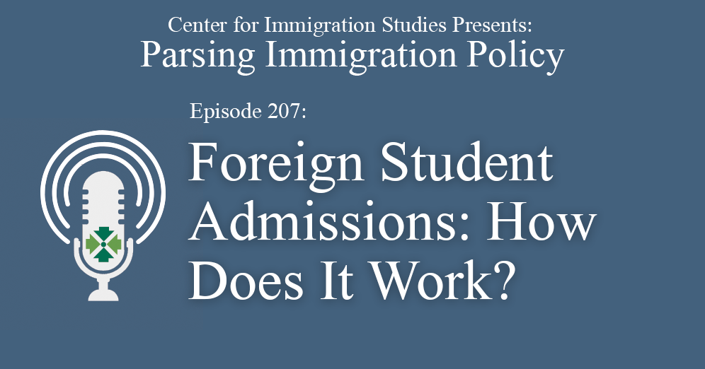 With foreign student visas at Harvard and elsewhere in the news, today’s episode of Parsing Immigration Policy features Andrew Arthur, the Center for Immigration Studies fellow in law and policy, providing a crash course on the subject. He explains the foreign student admissions process, the responsibilities of schools certified to enroll foreign students, and recent policy issues. With over one million foreign students studying (and working) in America, this episode covers the national security implications of not having proper knowledge of who is being brought in and what they are doing while in the U.S.
