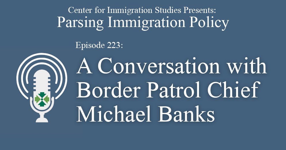 The latest episode of the Parsing Immigration Policy podcast features the audio of a recent sit-down between Executive Director Mark Krikorian and Michael Banks, Chief of the U.S. Border Patrol. During an in-depth discussion, Chief Banks touched on the current state of border security, including apprehension numbers, maritime illegal immigration, northern border challenges, gotaways, recruitment efforts, the role of the National Guard, and more.